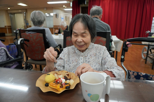 今年の施設長のデザートはワッフルプレート(ワッフルが硬い方はチョコババロア)